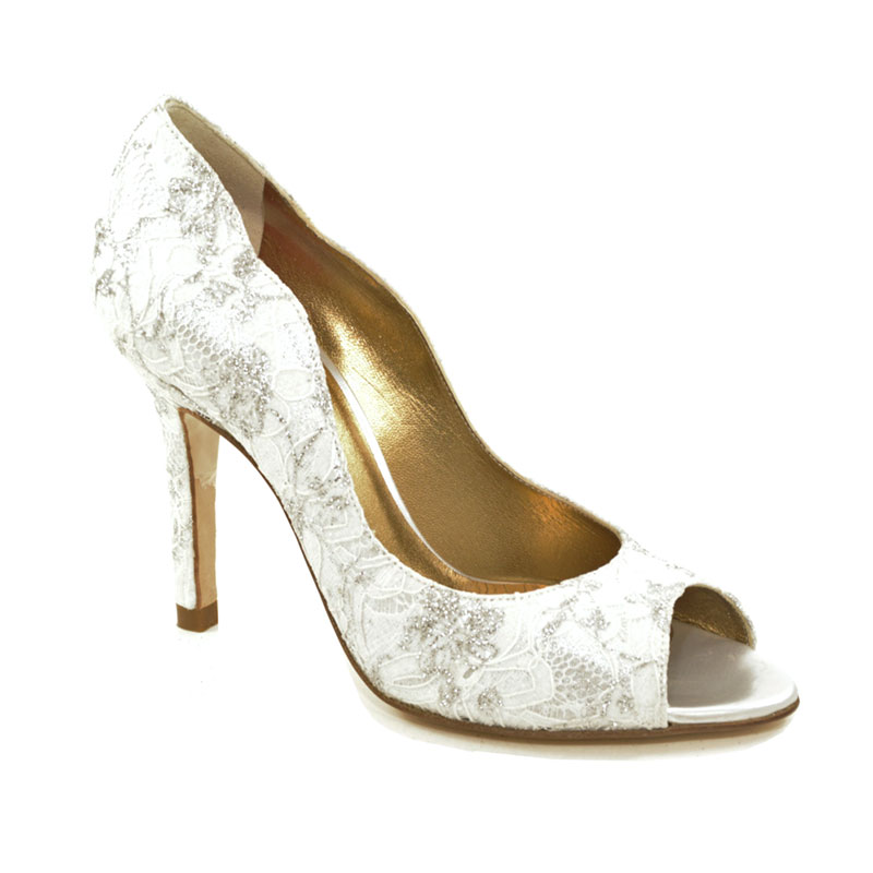 When you need a shoe to make your day special, choose classic lace. With an elegant optical white bridal lace upper in silver laminated transparency. The 'Veronica' pump is reminiscent of sophisticated feminine lingerie and adds a touch of seduction to the classic pointed shoe. With a 105mm pointed stiletto heel, it is one of the most sought after designs from OL brand Jimmy Shoes.